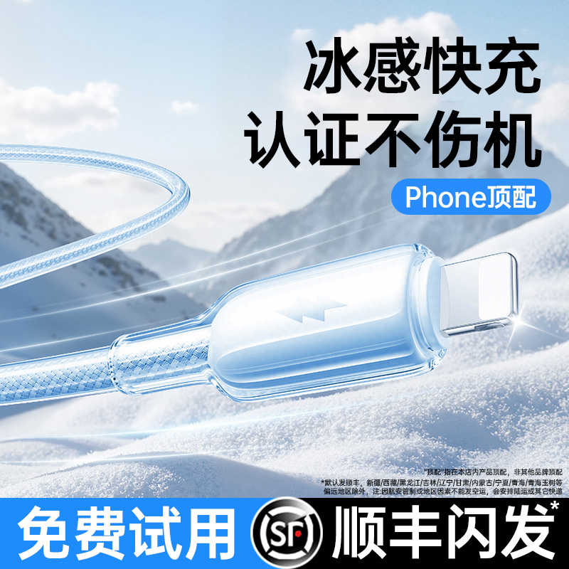 第一卫适用苹果充电线iphone14数据线器lightning闪充13手机17 不伤机 16接口45w12usb11平板 冰透快充