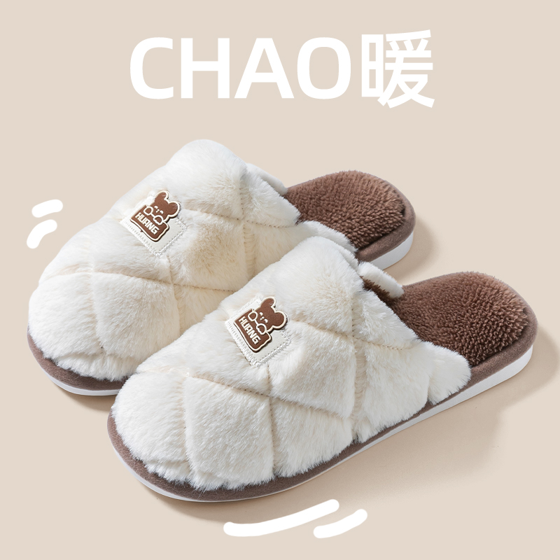 毛毛绒家居厚底保暖防滑家用情侣月子男 2025新款 棉拖鞋 女士秋冬季