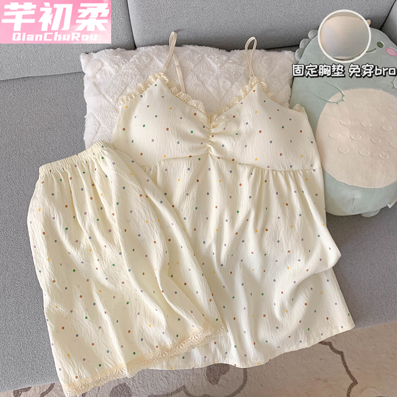 甜美可外穿家居服套装 猫人带胸垫睡衣女款 2025新款 纯棉长袖 春秋季