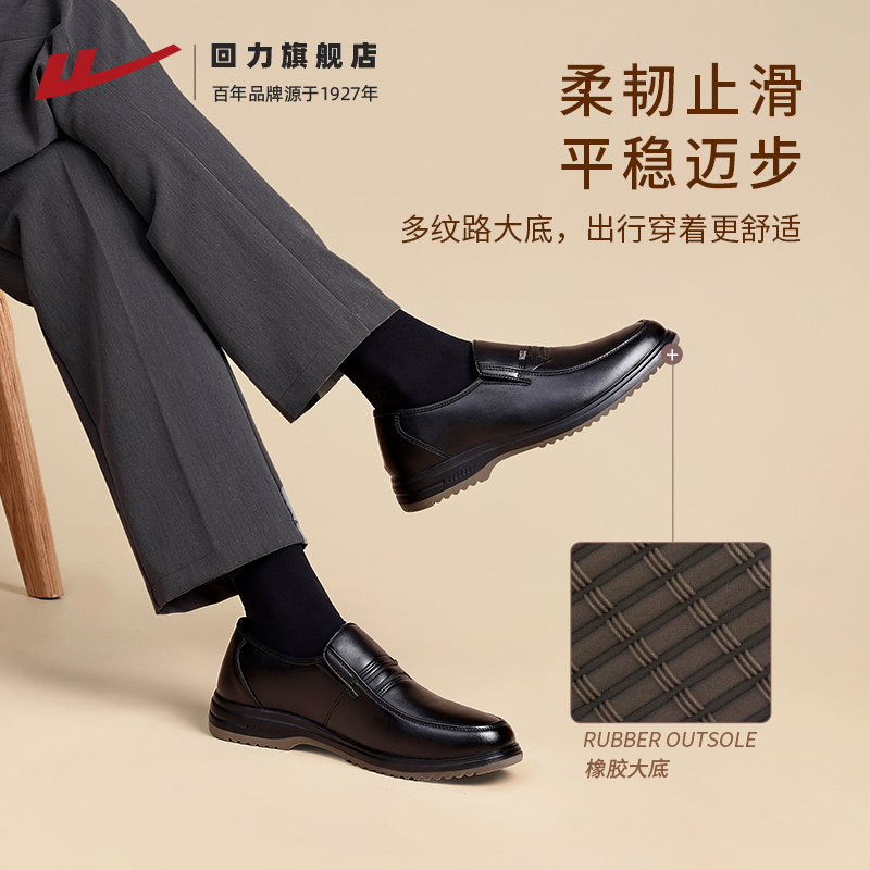 男款 皮鞋 中老年喜爸爸鞋 上班休闲男士 子秋 爷爷一脚蹬男鞋 回力皮鞋