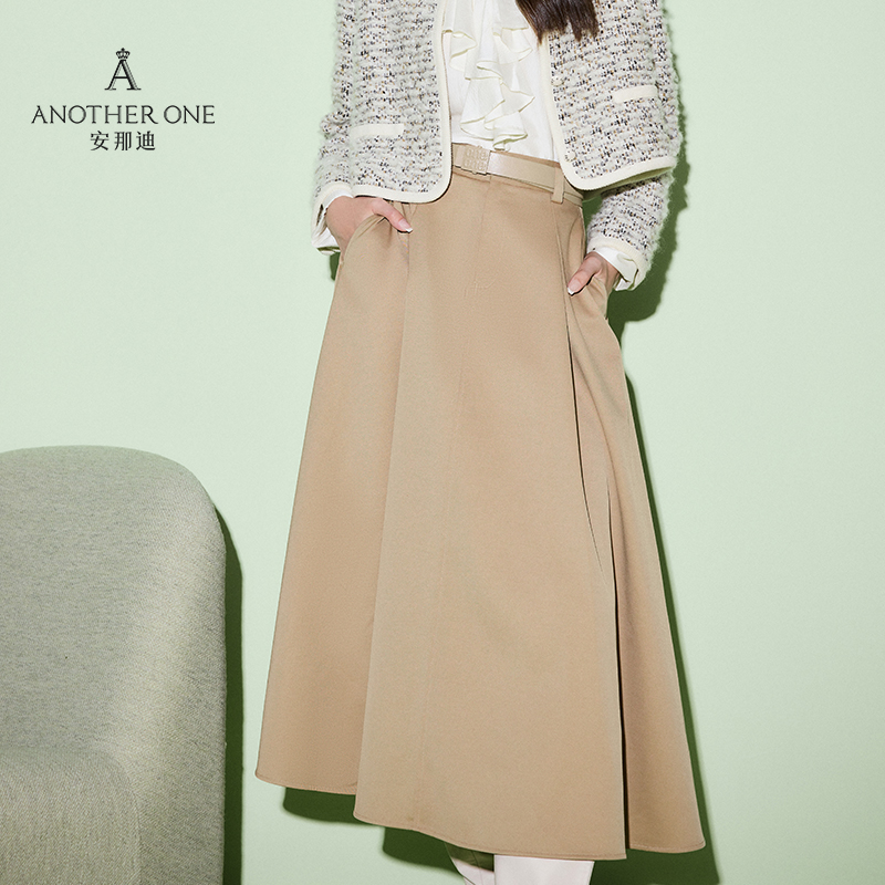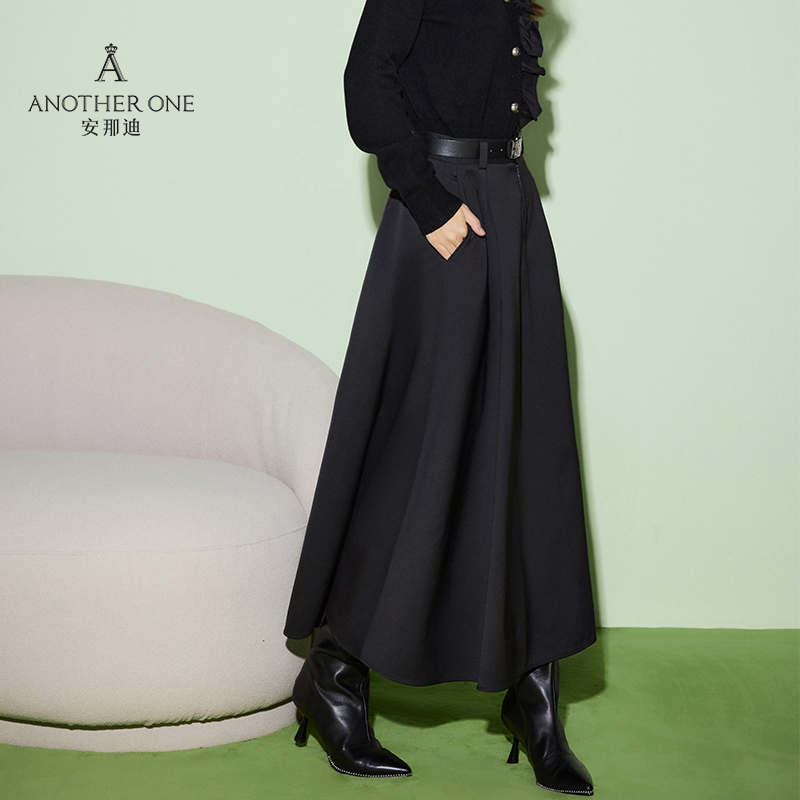 a字高腰垂感秋冬伞裙 中长款 黑色花边毛呢半身裙女秋季 2025年新款