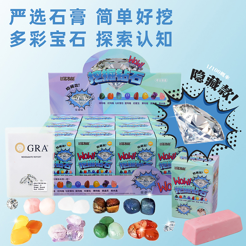 考古挖掘黄金钻石盲盒儿童挖宝石藏恐龙玩具男女孩幼儿园奖品礼物
