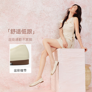 A5461AQ5 方跟浅口女一脚蹬单鞋 百思图2025春商场新款 通勤羊皮船鞋