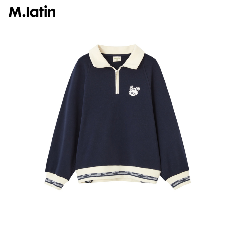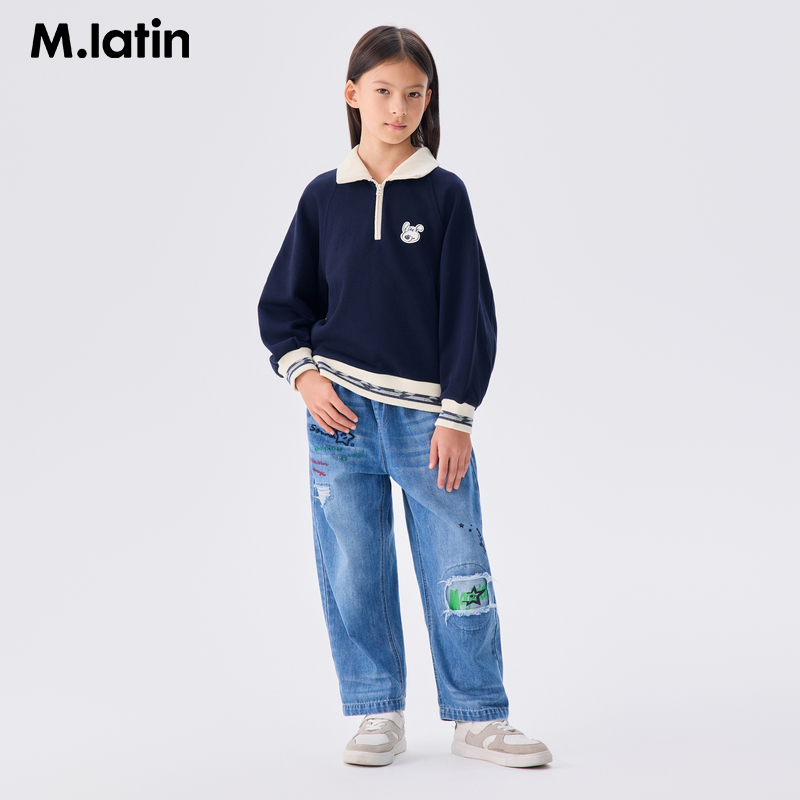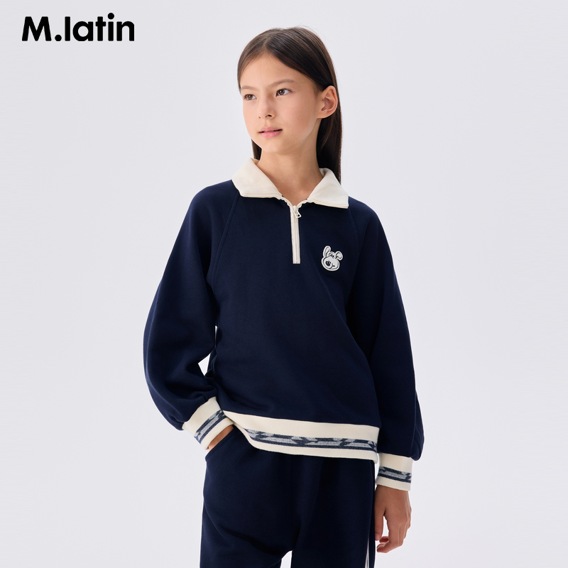 马拉丁童装 女大童复古撞色提花潮流学院立领卫衣 卫衣秋装