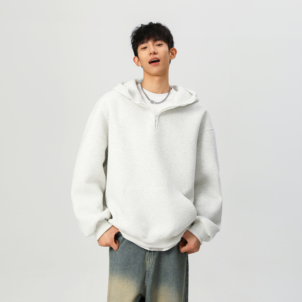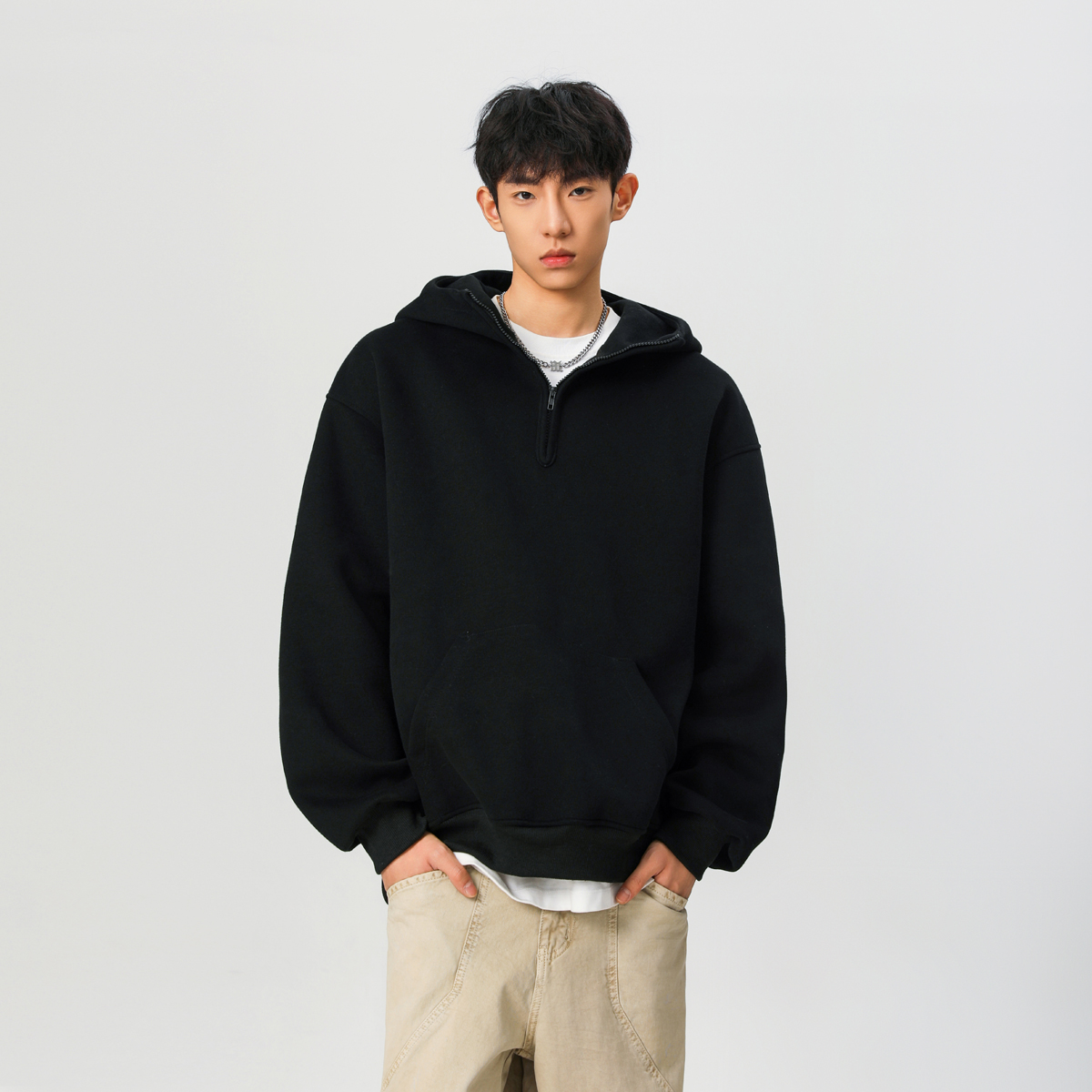 440g重磅cleanfit半拉链卫衣男2025春秋新款 潮牌宽松连帽外套 美式