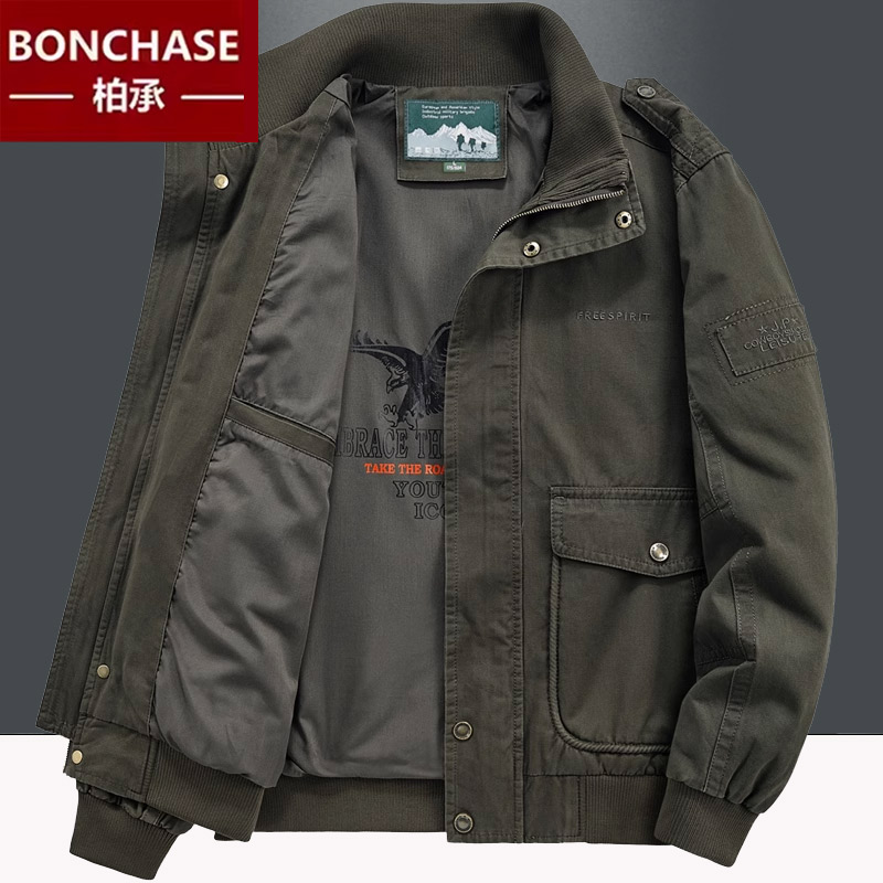 宽松休闲中年爸爸薄款 红蜻蜓男士 新款 翻领夹克秋季 外套男 明线工装