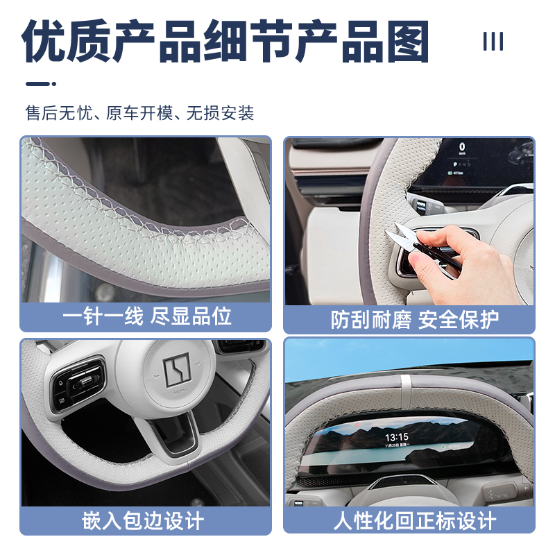 适用于极氪7X手缝方向盘套四季 配件 通用防滑防汗汽车把套内饰改装
