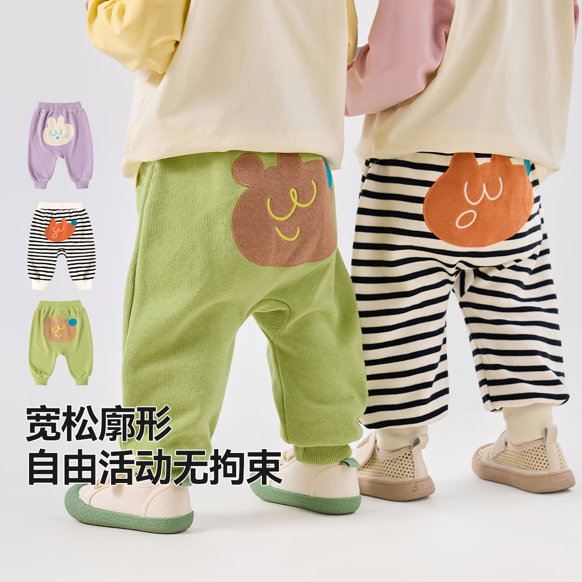 百搭宽松休闲哈伦裤 2025秋冬新款 子 女条纹拼接束脚运动裤 欧货卫裤