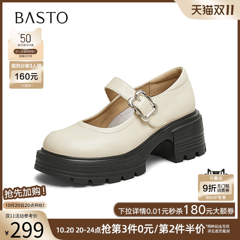 粗跟女单鞋 百思图2025春季 小皮鞋 高跟玛丽珍鞋 W6752AQ5 商场新款