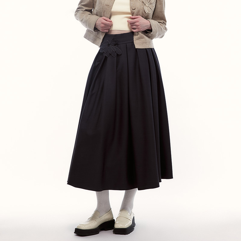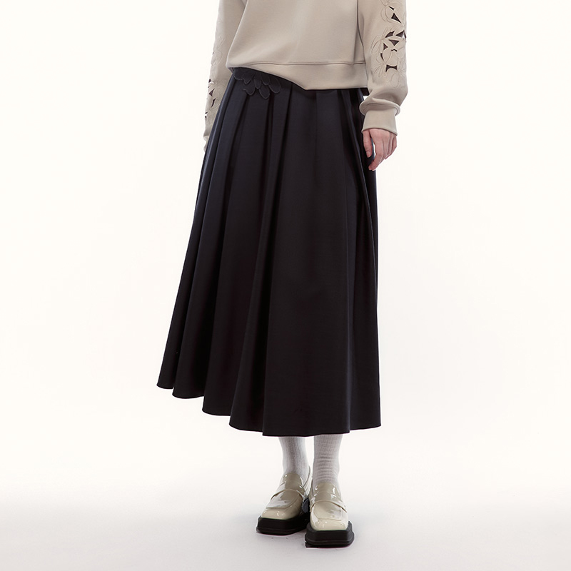 紫涵拼接花苞型半身裙女秋季 高腰显瘦休闲通勤百搭宽松中长裙 新款