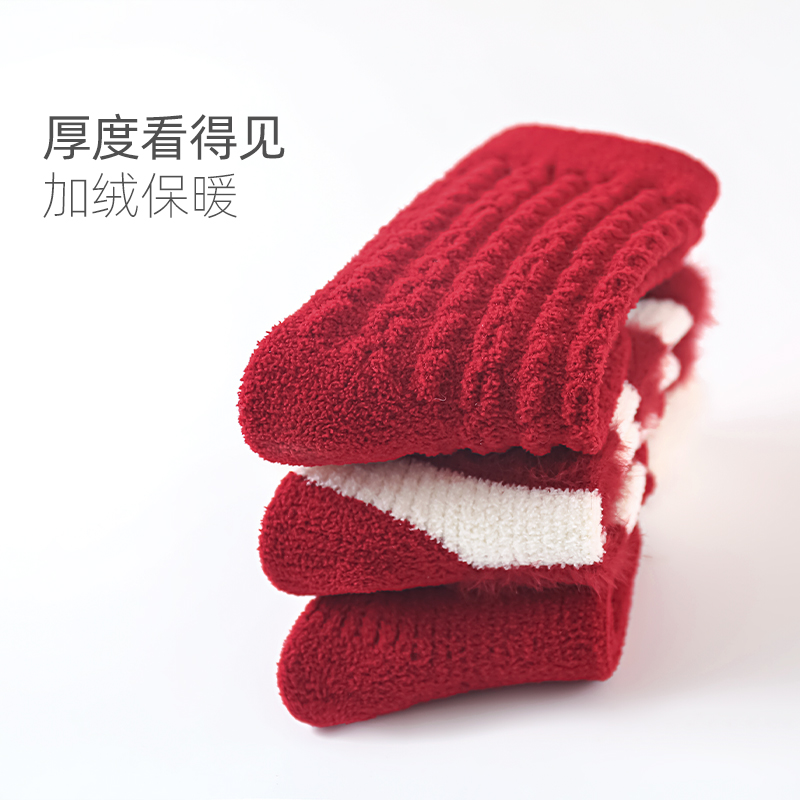汤尼倍儿婴儿袜子不勒腿秋冬加厚宝宝红色喜庆满月周岁新年中筒袜