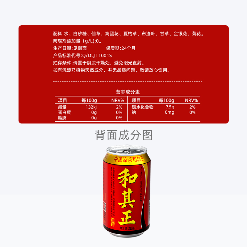 和其正凉茶饮料金银花草本植物饮品310ml 节日送礼 24罐礼盒装