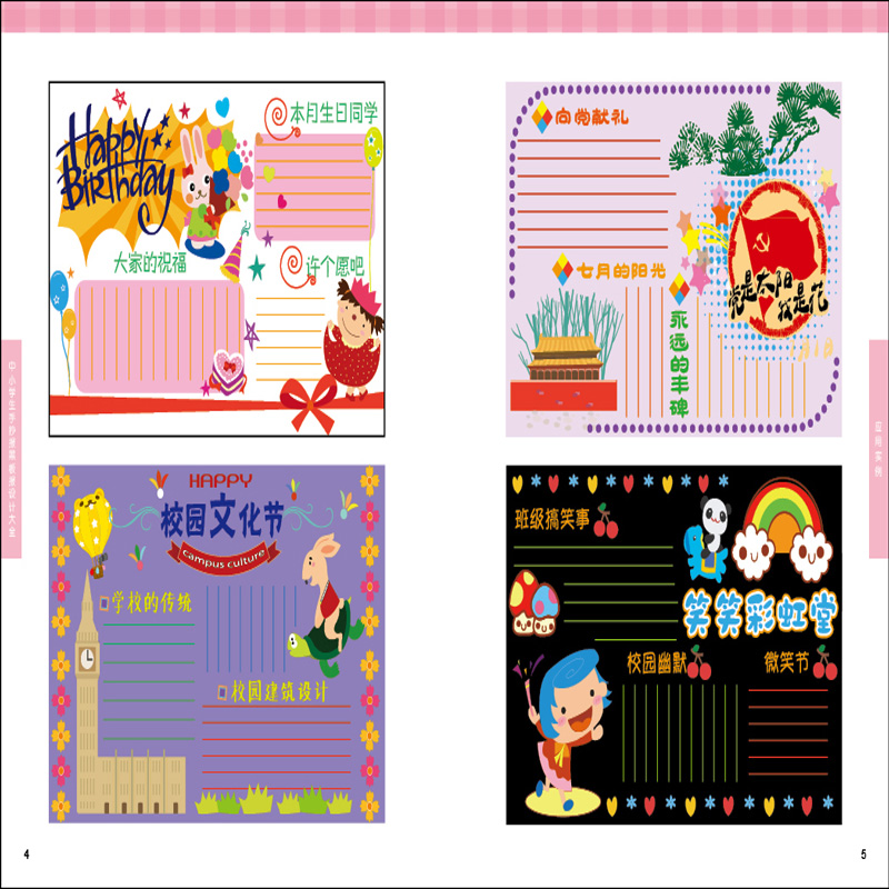 中小学生校园手抄报黑板报大全民俗文化节日迎中秋庆国庆黑板报设计大全元 旦春节学生手抄报模板素材宝典创意墙报画指导教材书籍