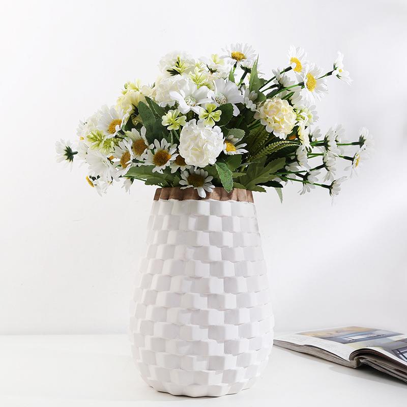 欧式 饰摆件 玫瑰插花花瓶白色简约陶瓷花器客厅餐桌干花鲜花水培装