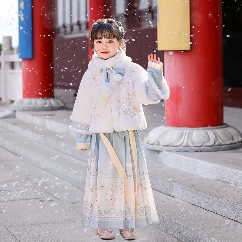 马面裙冬装 新中式 过年喜庆衣服 2025新款 拜年服女童中国风汉服唐装