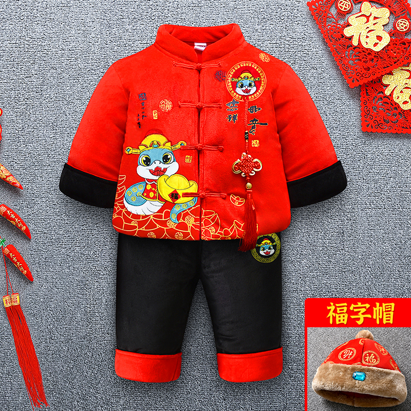 男童汉服冬款 蛇年婴儿 红色喜庆过年拜年衣服男孩周岁礼服男宝中式