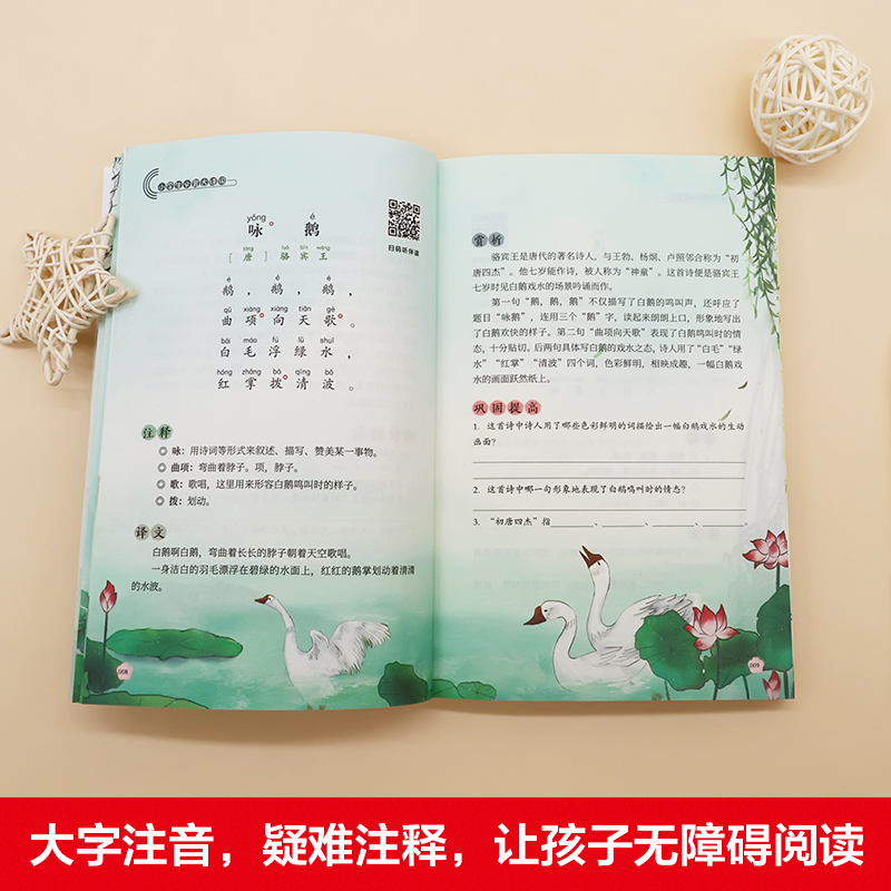 诵读一二三四五六年级课外阅读理解训练唐诗三百首古诗文人教语文教材配套李白高适 3注音版 小学生必背古诗词75 80首文言文68