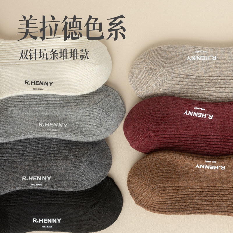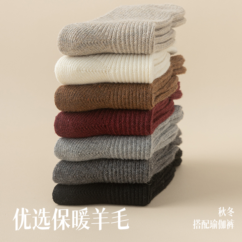 日系简约厚款 灰色羊毛袜子女中筒长筒堆堆袜秋冬季 保暖搭配瑜伽裤