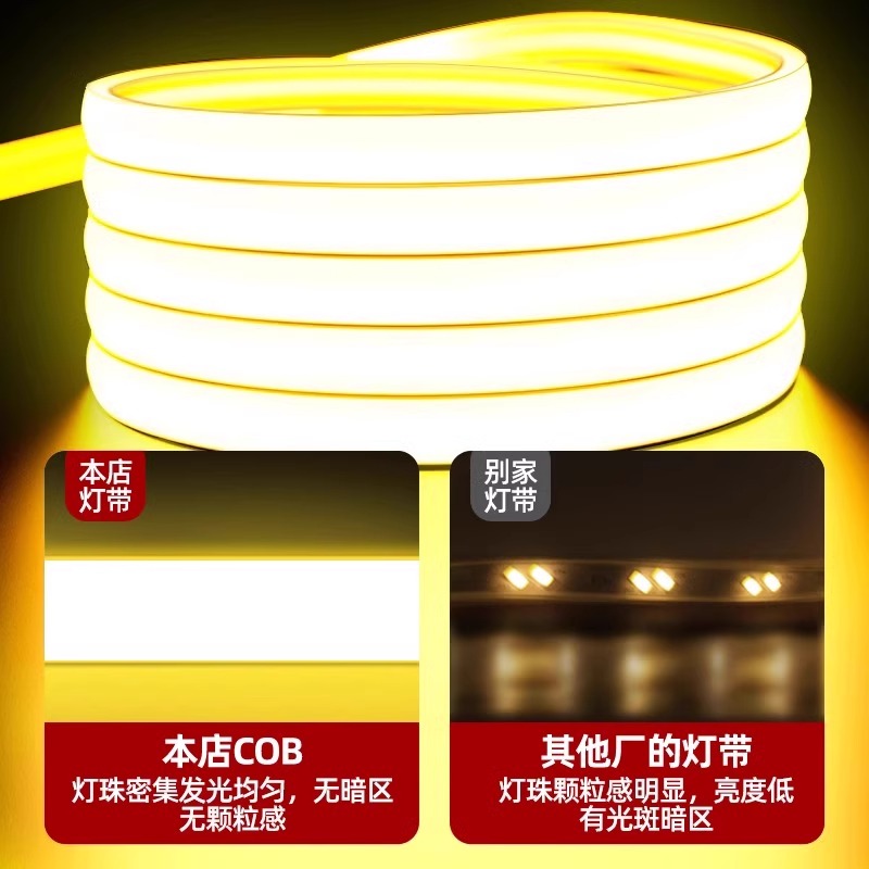 超薄led灯带220v防水超亮自粘线形灯槽家用客厅吊顶COB工程软灯条