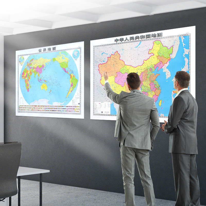 防水办公室客厅家用地图 2024年全新版 1.1米高清精装 超大尺寸1.5 全国世界国家行政区划地图墙贴 中国地图和世界地图