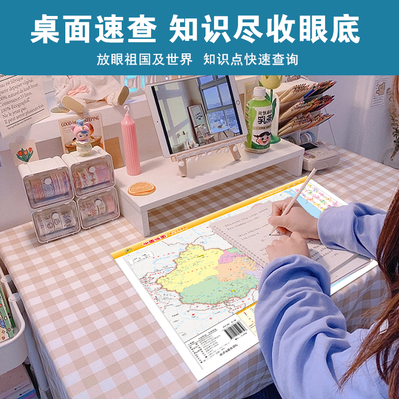 塑料硬壳中国地图 双面地形地理知识小初中生专用地理学习超清细节印刷 世界地图垫板8K 新版 中小学生地理教辅教学工具 2023正版