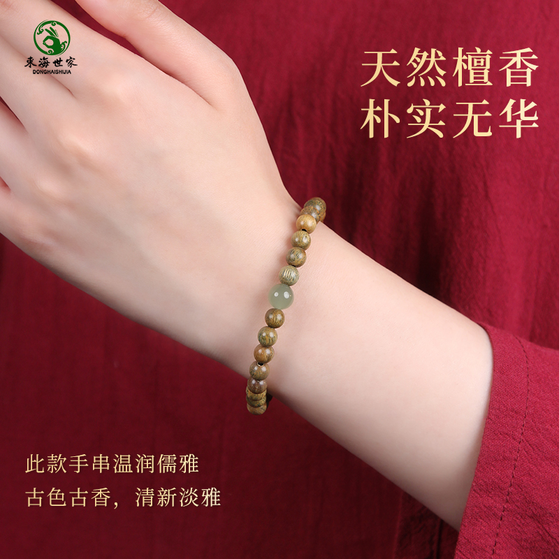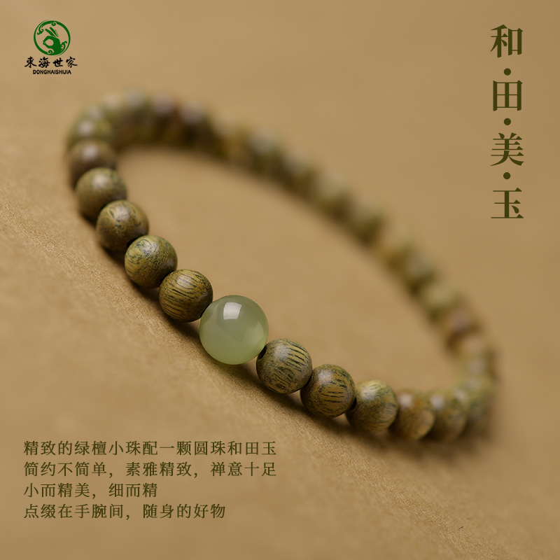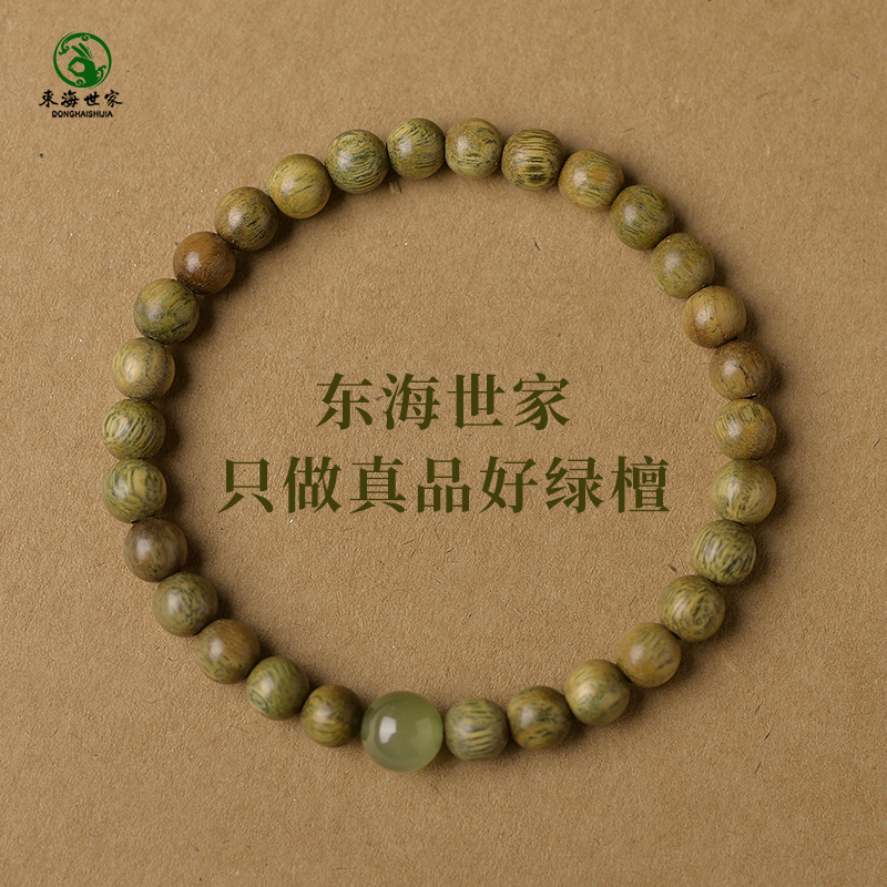 绿檀手串女水晶玛瑙翡翠玉石檀香木文玩佛珠檀木散珠子绿檀木手链
