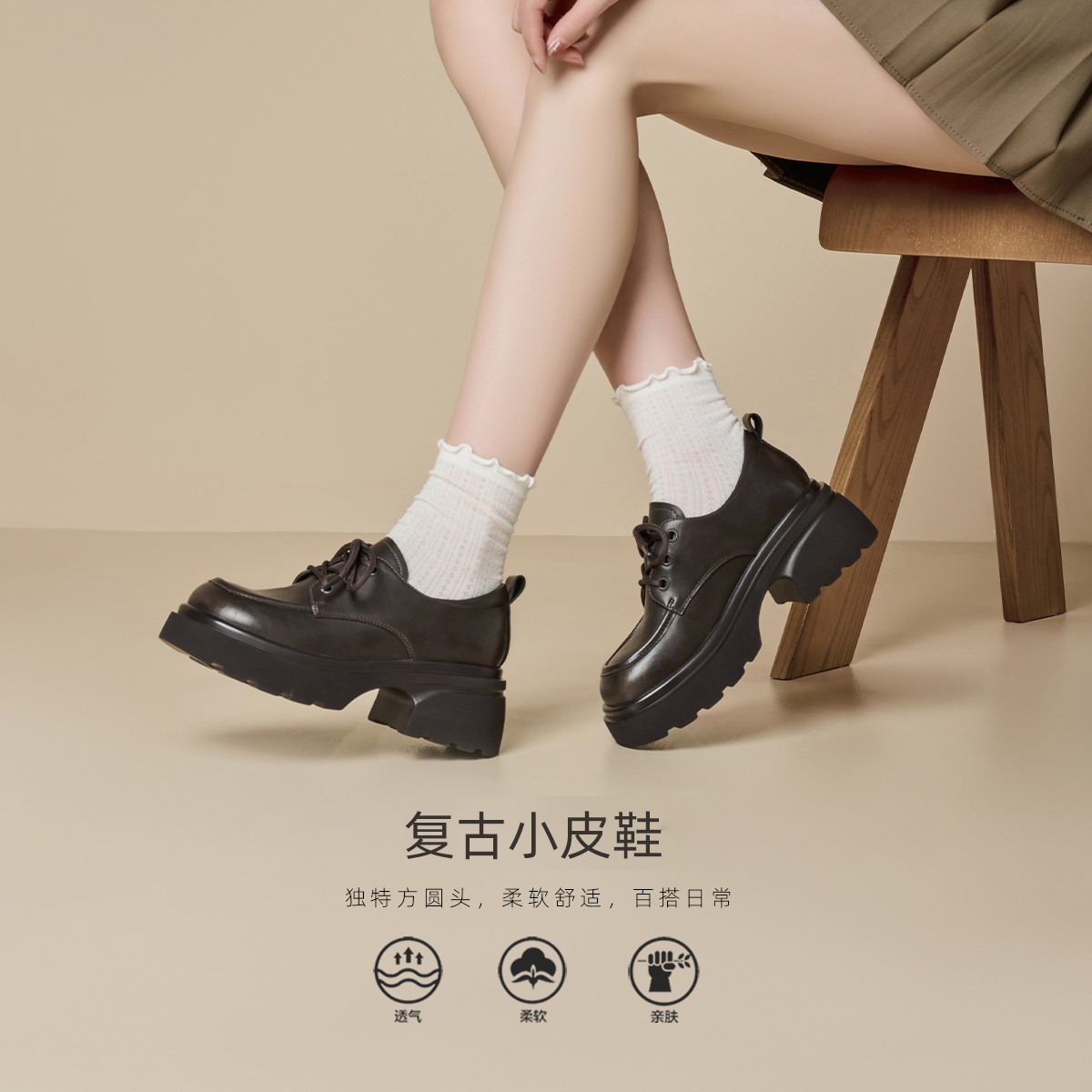 新款 学院风单鞋 乐福鞋 百搭增高女鞋 粗跟厚底小皮鞋 戈美其舒适春季