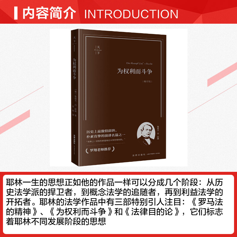 图书籍 社 鲁道夫·冯·耶林 译 法学理论社科 刘权 德 著 法律出版 为权利而斗争 新华书店正版 畅享版