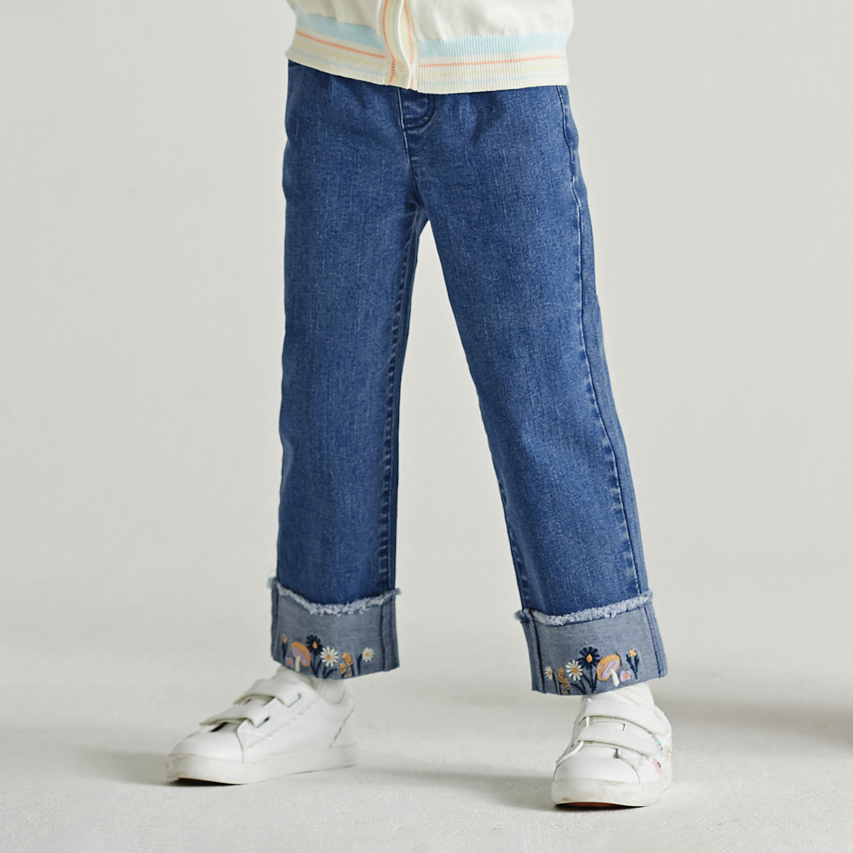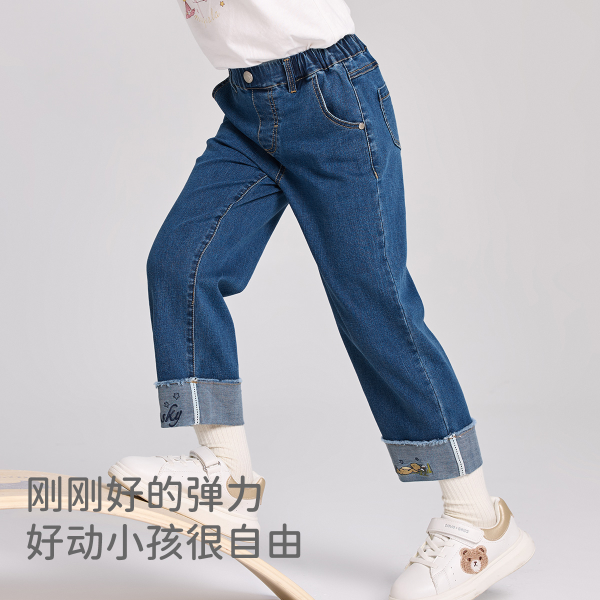 女童裤 儿童裤 子2025秋冬新款 牛仔裤 子 中大童直筒阔腿裤 植木童装