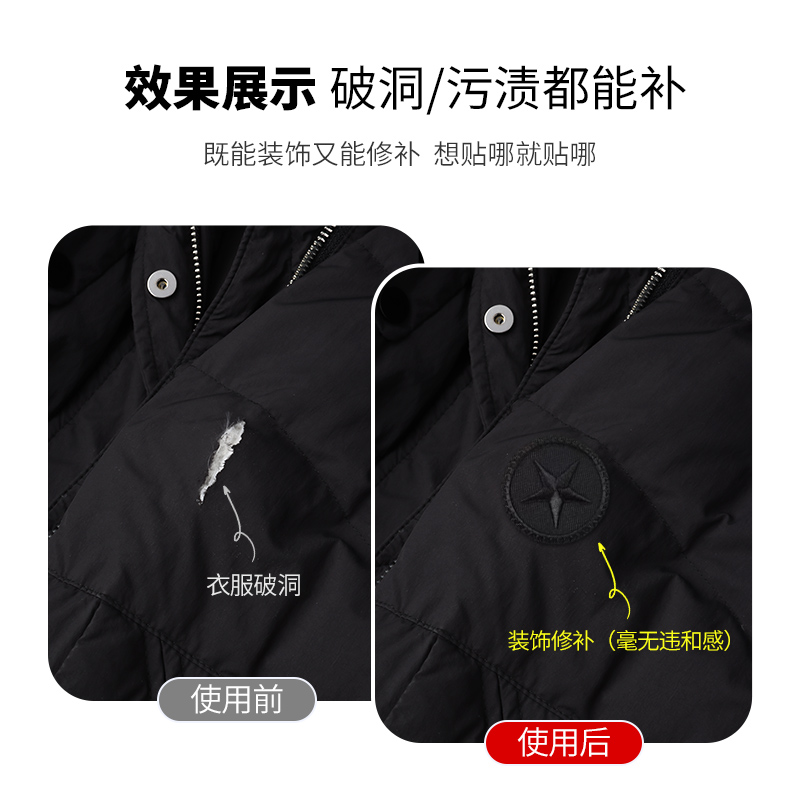 自粘羽绒服补丁贴衣服皮衣破洞高级修补刺绣贴花黑色无痕修复布贴