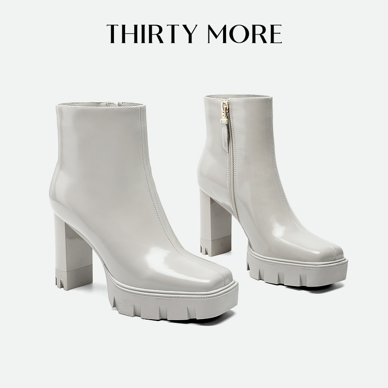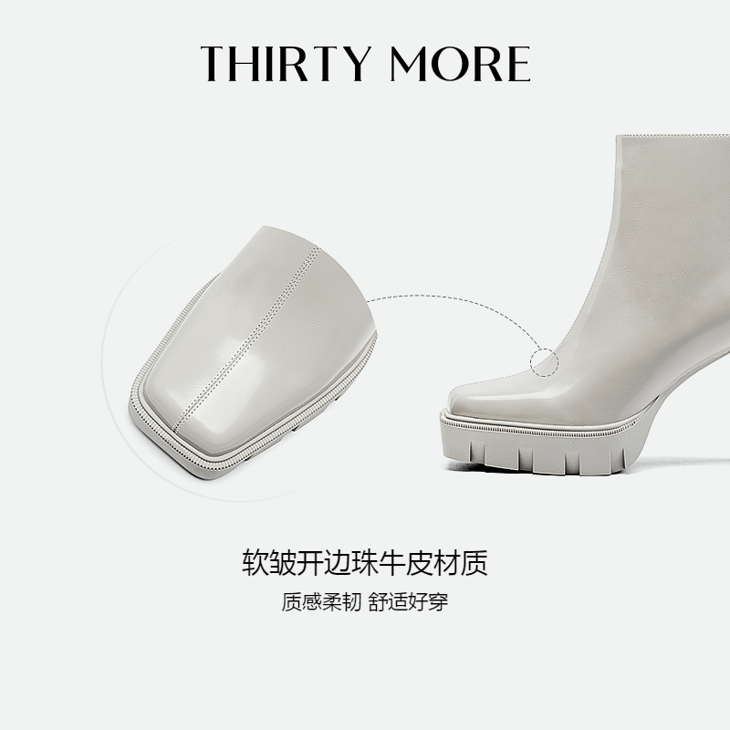 加绒粗跟瘦瘦靴百搭气质女鞋 新款 More方头短筒靴女25秋季 Thirty