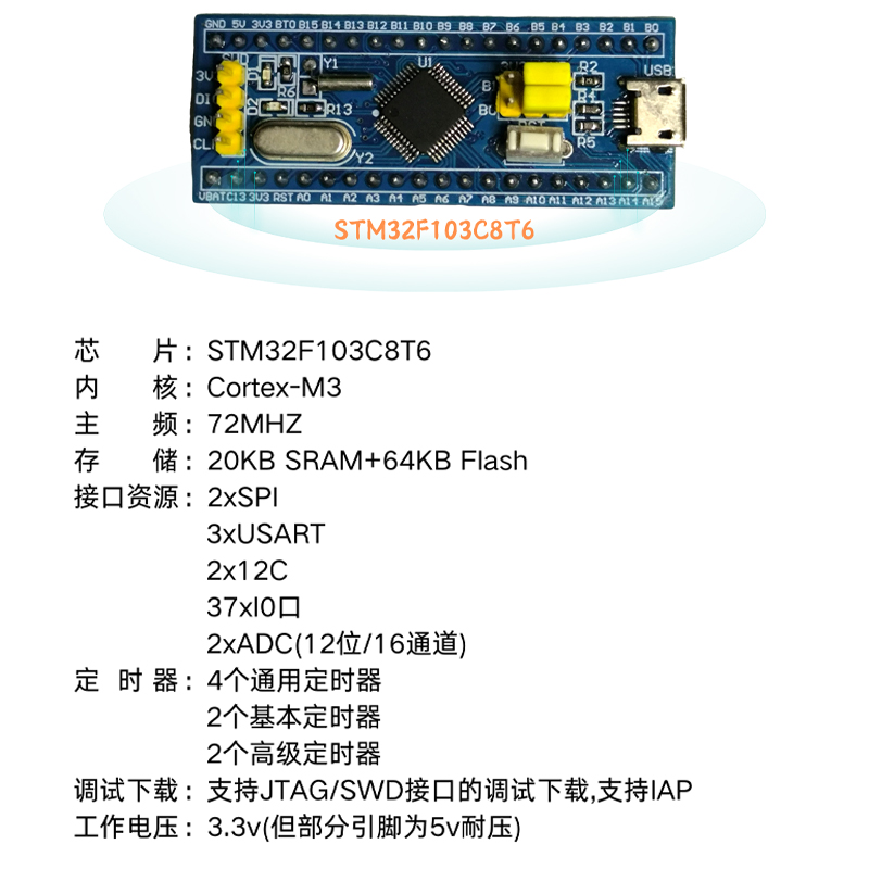 STM32F103C8T6开发板核心板STM32快速入门学习套件 C编程普中精灵