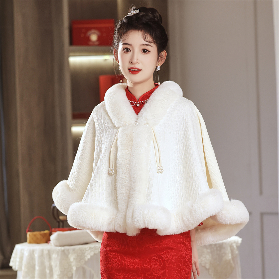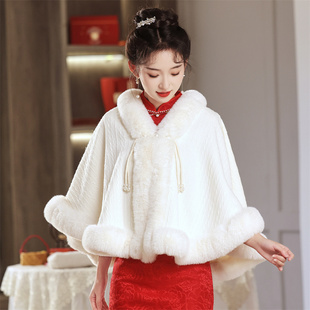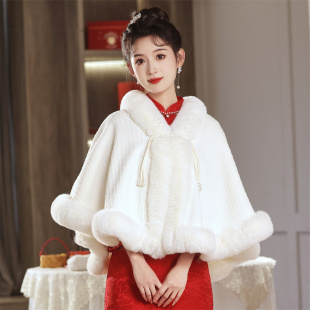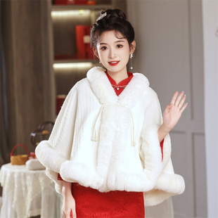 新娘结婚毛披肩婚纱披肩斗篷婚礼保暖披风白色开衫 伴娘皮草外搭冬