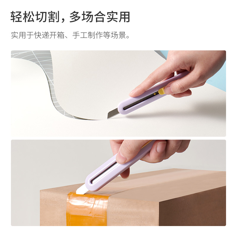 小学生手工制作开箱 圆润边角持握舒适可换刀片 KACO乐迈美工刀马卡龙撞色不锈钢锋利刀片 轻松切割不易折断