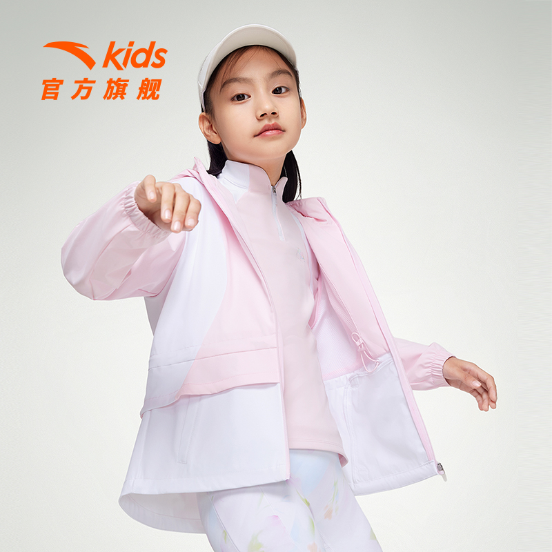 外套 女童春装 安踏儿童女孩外套连帽跑步薄款 防泼水防风商场同款