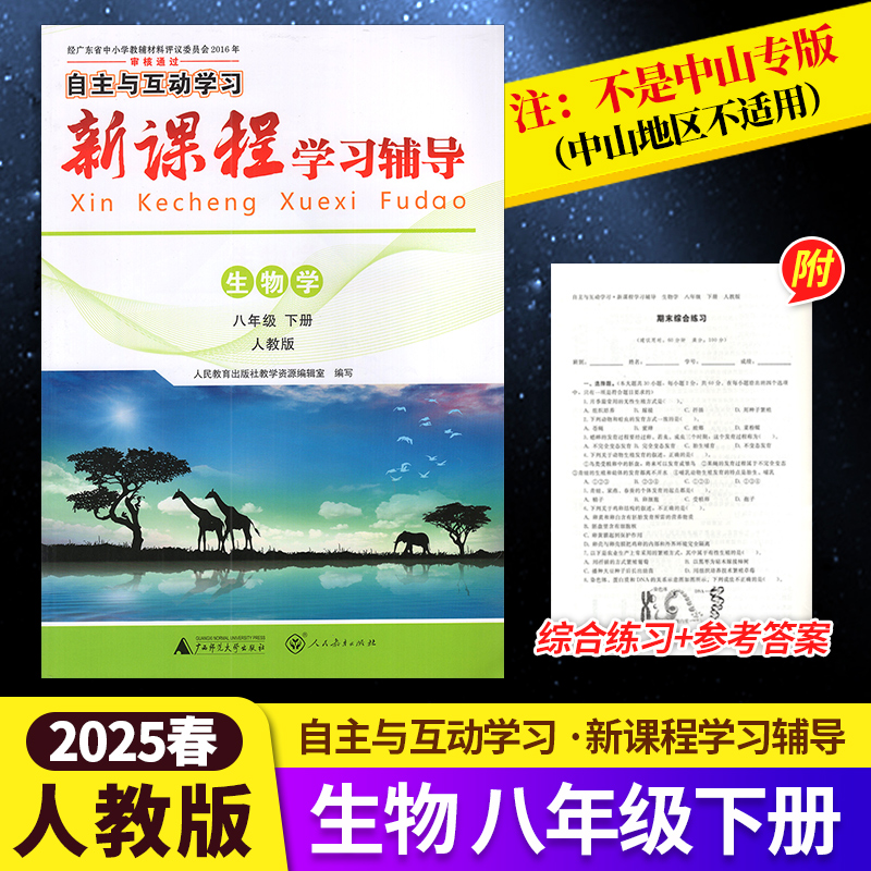 社 广东教材同步练习册人民教育出版 粤教沪科版 2025春自主与互动学习新课程学习辅导语文数学物理生物七八九年级下册人教版