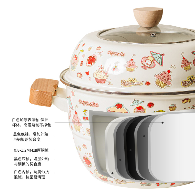搪瓷蒸锅珐琅多层家用馒头燃气灶电磁炉专用陶瓷加深24cm2025新款