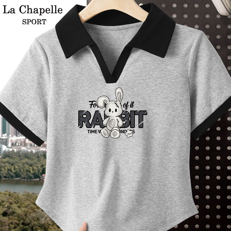 短袖 上衣女款 t恤女夏季 粉色正肩短款 体恤2025新款 拉夏贝尔polo衫
