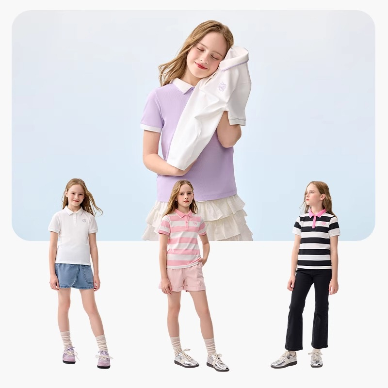 t恤儿童polo衫 童装 大童翻领上衣打底衫 新款 夏装 巴拉巴拉女童短袖