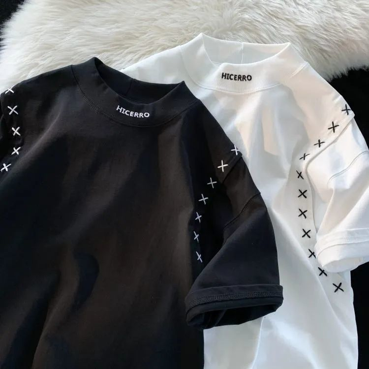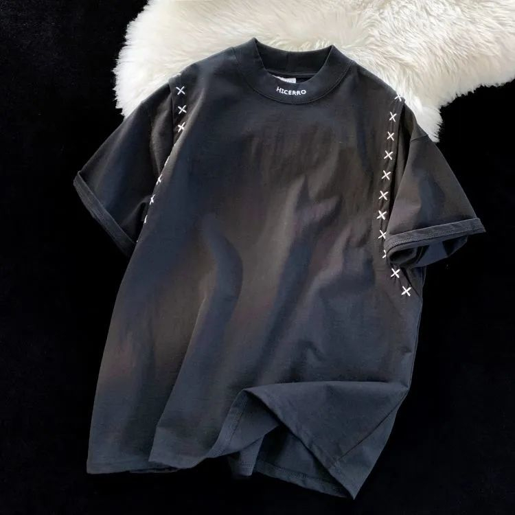 潮牌oversize半袖 T恤男女夏季 情侣上衣 300斤设计感拼接短袖 特大码