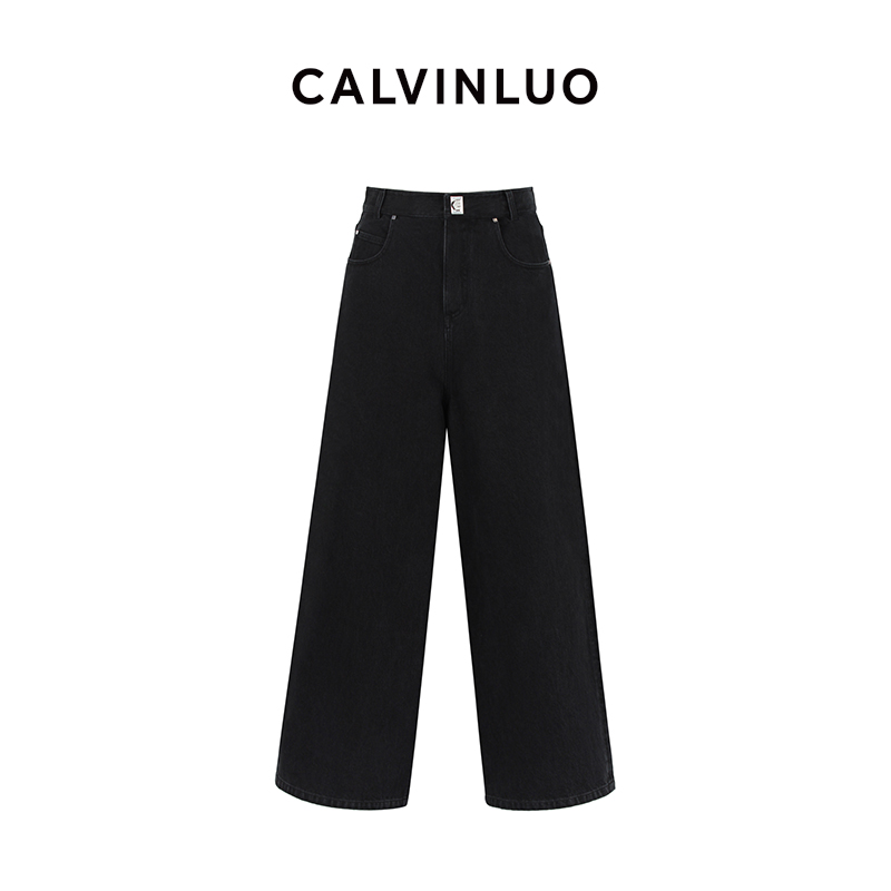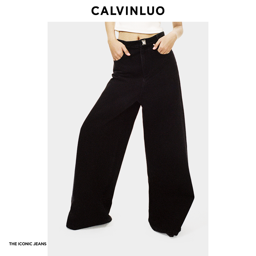 黑色低腰阔腿牛仔裤 周雨彤同款 经典 010 系列 CALVINLUO