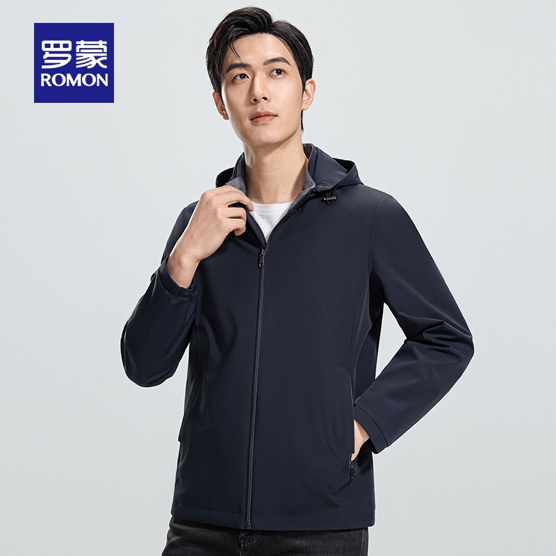 型美式 HM男装 宽松版 新款 潮流连帽夹克1300912 牛仔外套2025年秋季