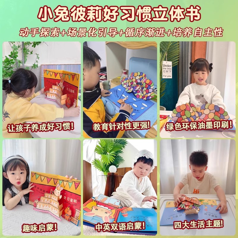 睡觉莉养成好习惯儿童3d立体书中英双语教学幼儿园撕不烂早教启蒙认知绘本书翻翻推拉书 吃饭 小兔彼莉好习惯立体书全4册洗澡 穿衣
