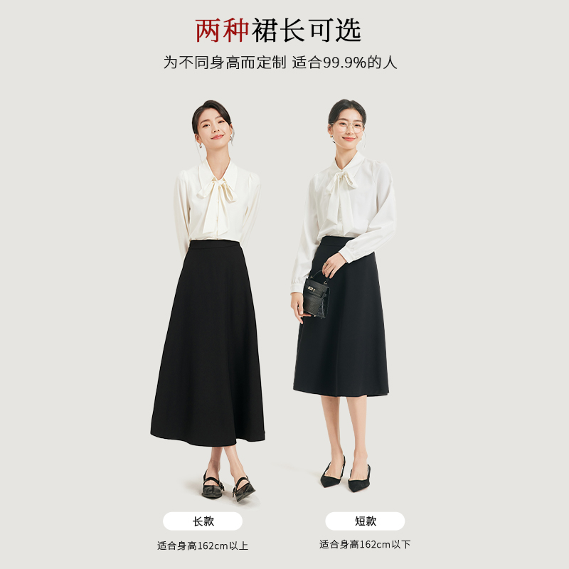 高腰梨型身材A字裙伞裙 半身裙百褶裙大码 胖mm显瘦百搭西装 中长款