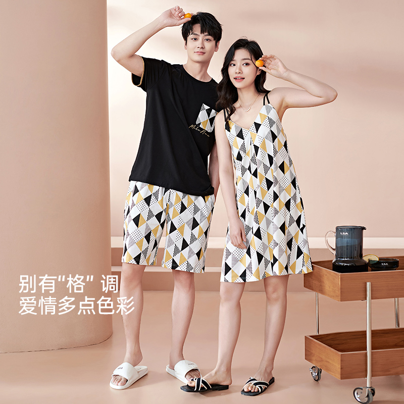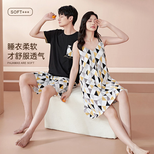 5A抗菌 套装 情侣睡衣吊带睡裙女可外穿纯棉夏季 男士 大码 玛伦萨
