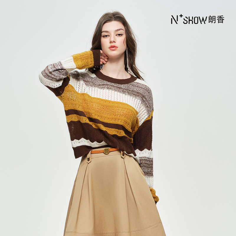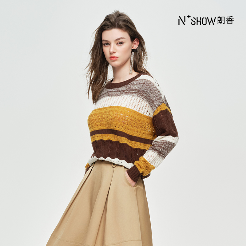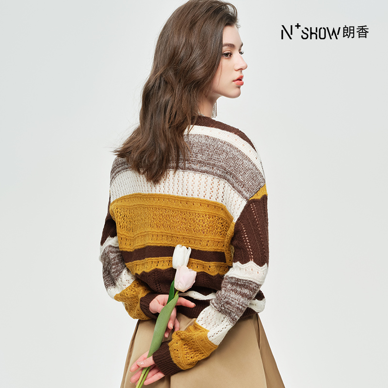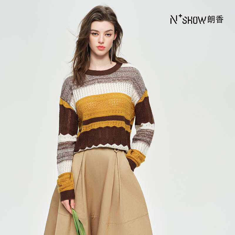 241027 马海毛条纹针织套头毛衫 NOWSHOW朗香春季 新品