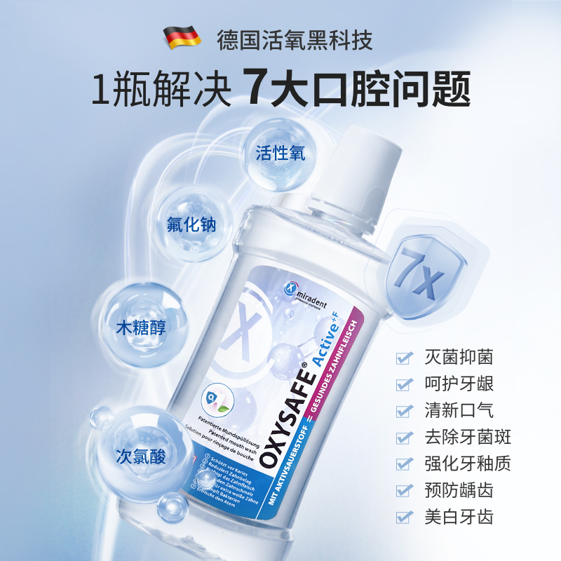 Miradent米睿德进口活氧漱口水抑菌含氟防龋无酒精除口臭持久留香