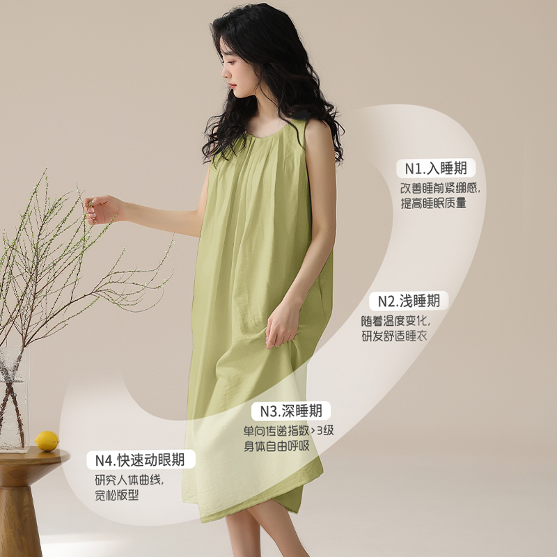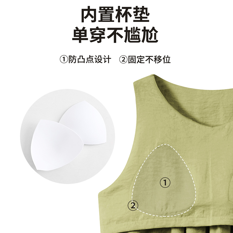 吊带睡衣纯色高级感可外穿家居服新 无袖 猫人带胸垫睡裙女夏季 薄款