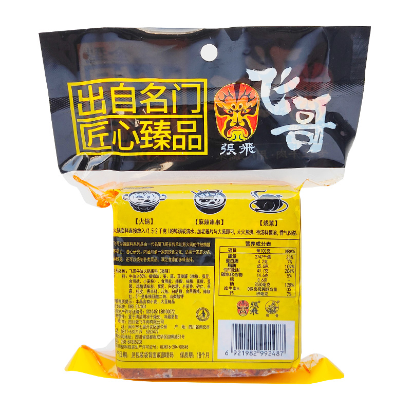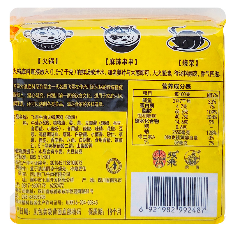 飞哥火锅底料中辣牛油调味料张飞火锅底料麻辣烫串串香微辣特辣