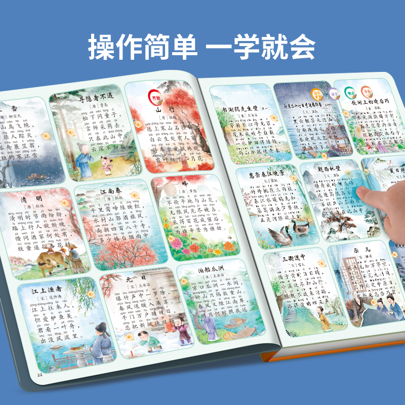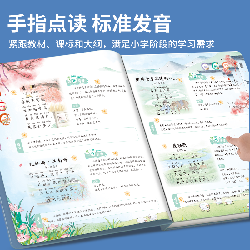 译文小学生必阅背古诗词有声书婴儿宝宝儿童认知启蒙认知书籍 80首带拼音幼儿早教点读发声书带注释 会说话 小学常背古诗词75